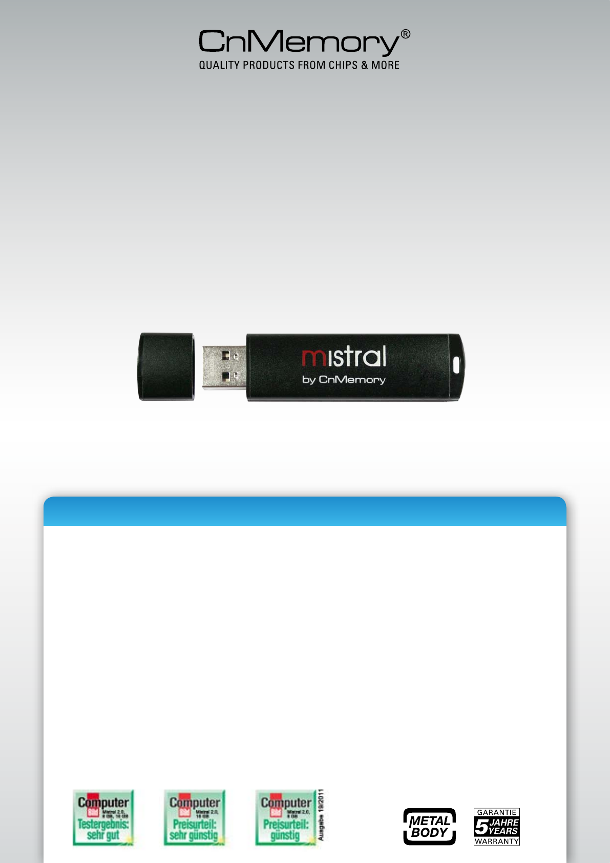 Mistral USB 2.0Technische Daten- Kapazität: 8 GB, 16 GB, 32 GB, 64 GB- Maße / Gewicht: 74,5 x 18,5 x 8,5 mm / 15g- Lesegeschwindigkeit bis zu 40 MB /